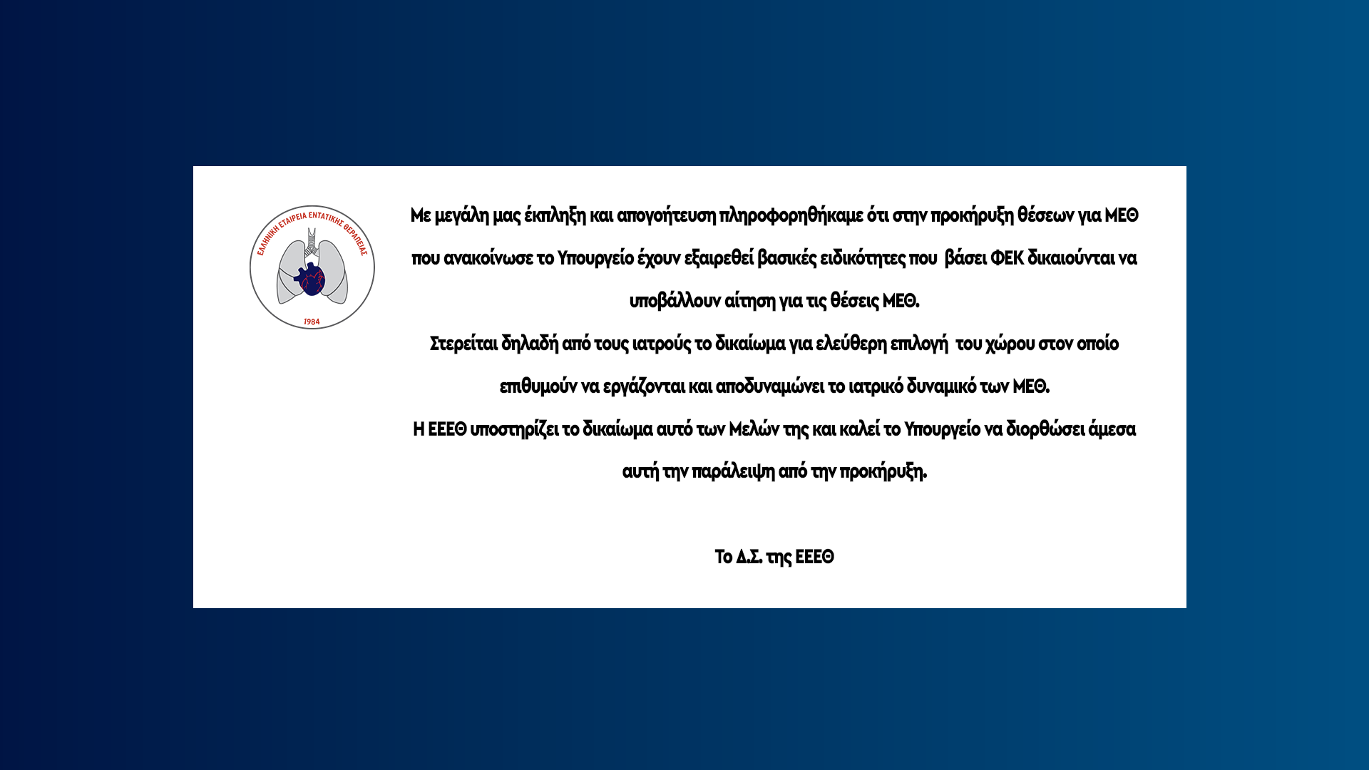 | ΣΥΓΧΑΡΗΤΗΡΙΑ ΑΝΑΚΟΙΝΩΣΗ ΓΙΑ ΕΚΛΟΓΗ ΤΑΚΤΙΚΟΥ ΜΕΛΟΥΣ ΕΕΕΘ ΩΣ ΜΕΛΟΣ ΤΗΣ ESICM NEXT COMMITTEE | 7 Ιουν. |